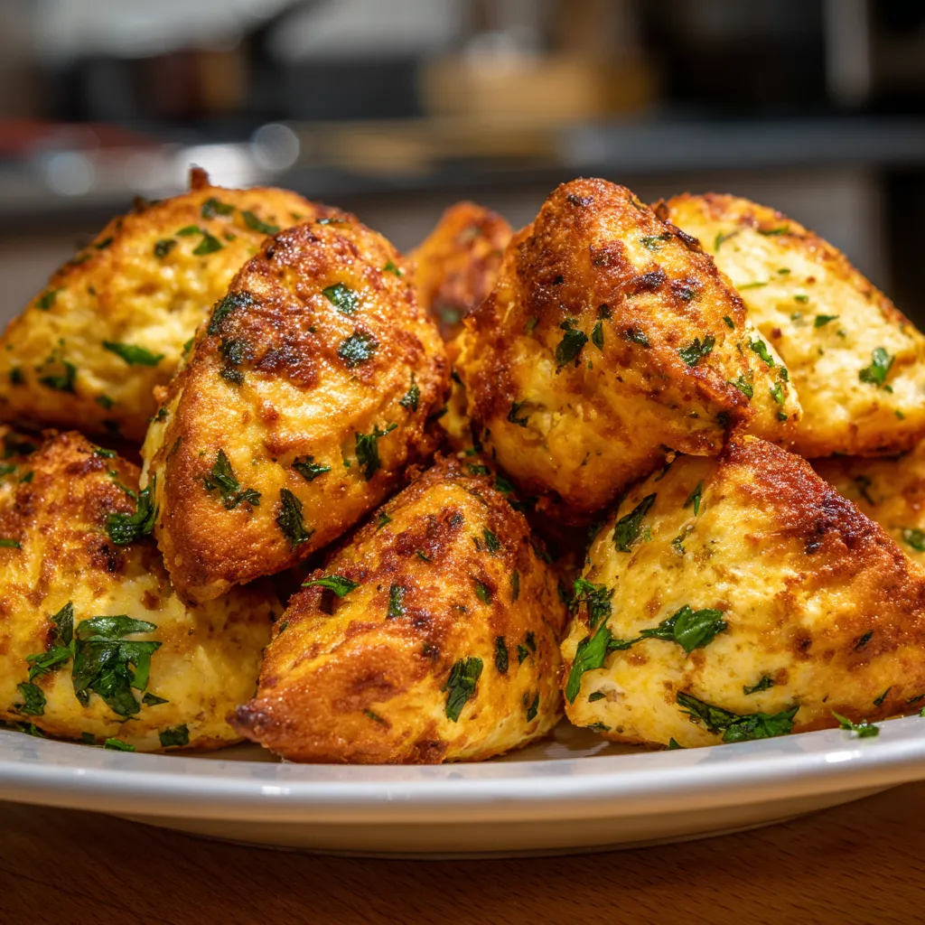 4. Cuisson à l’Airfryer : Faites cuire pendant 10-12 minutes, en retournant les bouchées à mi-cuisson pour qu’elles soient dorées et croustillantes de tous les côtés. Le temps de cuisson peut varier légèrement en fonction de votre modèle d’Airfryer, alors surveillez attentivement.