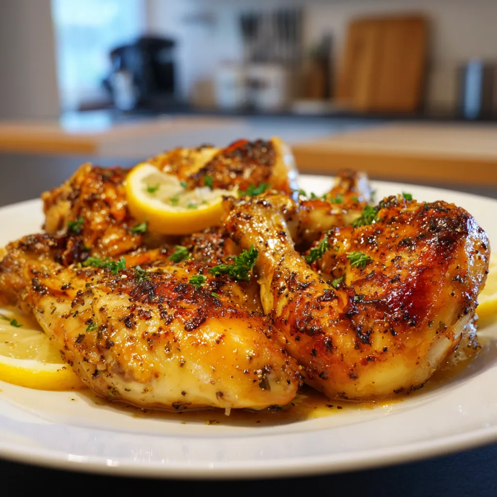 - Faites cuire le poulet pendant 20 à 25 minutes, en le retournant à mi-cuisson, jusqu’à ce qu’il soit doré et que la température interne atteigne 74°C (165°F). Vous pouvez badigeonner le poulet avec la marinade réservée pendant la cuisson pour plus de saveur.